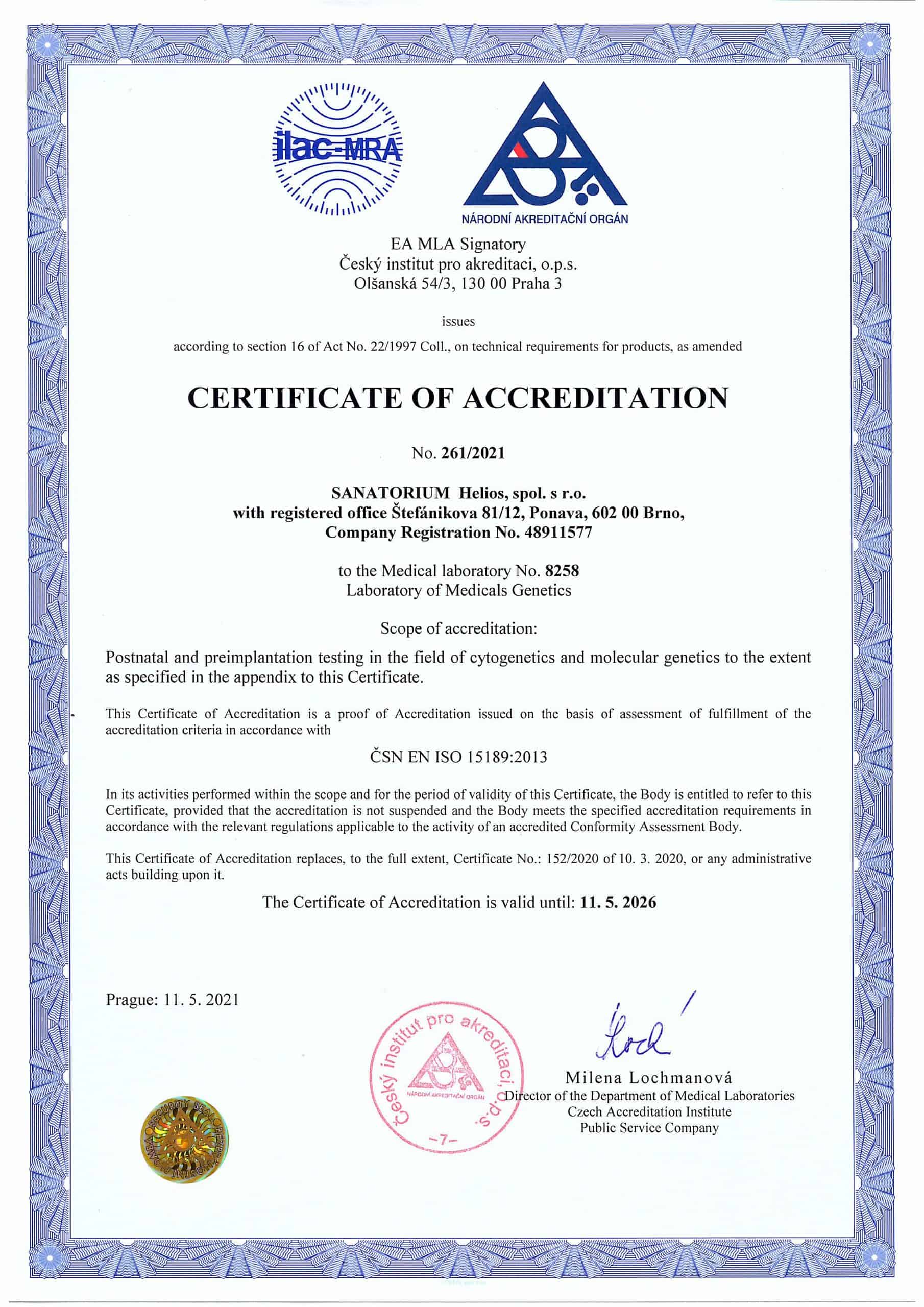 Auch unser Labor für Medizinische Genetik gewann die Akkreditierung nach EN ISO 15189, was die höchstmögliche Bewertung der Qualität der Arbeit in Laboratoren ist.
