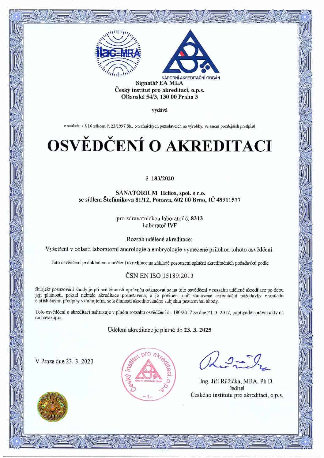 Sanatorium Helios besitzt die Akkreditierung des IVF Labors, die die höchste Bewertung der Qualität der Arbeit in unserem Labor darstellt.