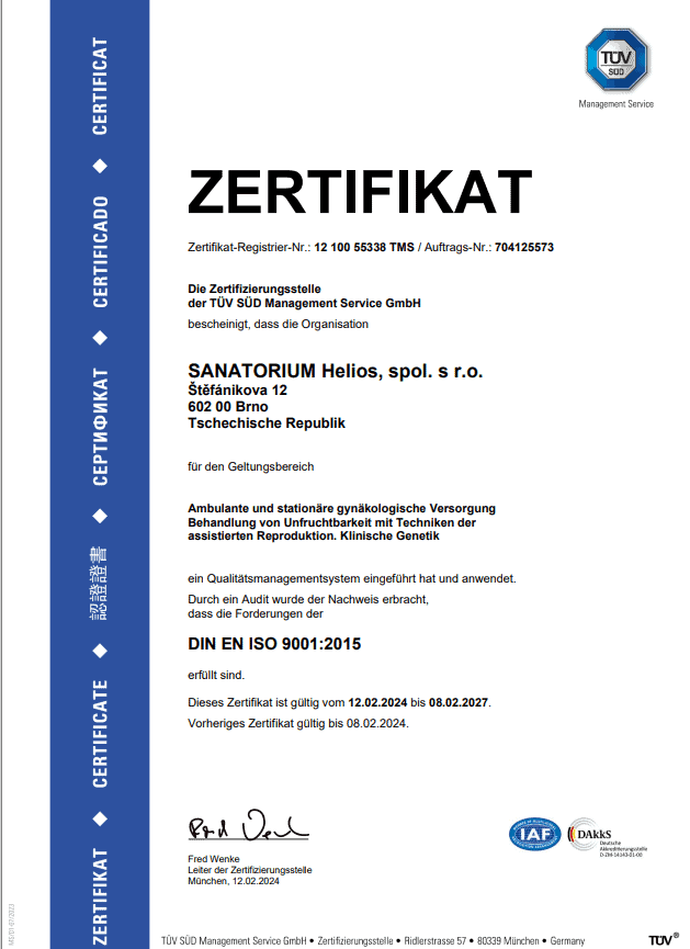 SANATORIUM Helios als einziges Kinderwunschzentrum in der Tschechischen Republik wurde von der Gesellschaft Global Clinic Rating, die sich mit dem weltweiten Vergleich der IVF Kliniken befasst, akkreditiert.
